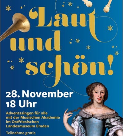 Das Ostfriesische Landesmuseum Emden und die Musische Akademie Emden laden auch in diesem Jahr gemeinsam zum offenen Adventssingen ein: Am Freitag, den 28. November, kann jede und jede ab 18:00 Uhr mit der eigenen Stimme die hervorragende Akustik im Foyer des Museums genießen. Das Adventssingen richtet sich an alle Menschen, die Lust haben, ihre Stimmen klingen zu lassen - von Jung bis Alt, von geübten Sängerinnen und Sängern bis zu denen, die sich sonst nicht trauen. Vorkenntnisse sind nicht nötig: Summen, Singen, leise oder laut - alles ist erlaubt.