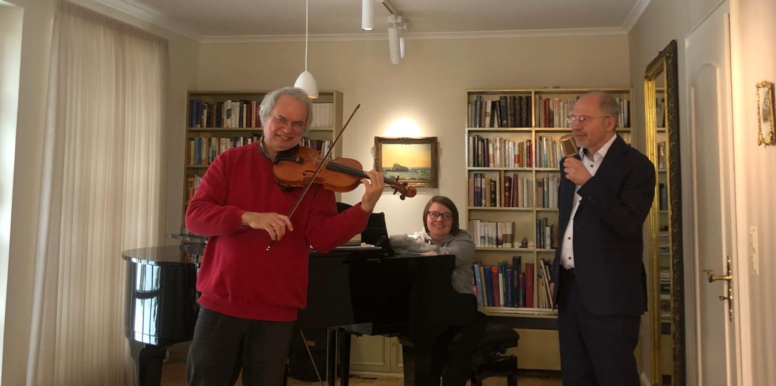 In Person von Julia Weigert lässt das ‚Trio Pikant‘ das E-Piano erklingen. Die Pianistin ist in Emden an verschiedenen Musikprojekten beteiligt und zeichnet sich durch eine hohe Professionalität aus. Die Geige spielt virtuos und unterhaltsam Michael Schunk, der unter anderem lehrend an der Musischen Akademie aktiv war. Diethelm Kranz ist Mitarbeiter des Ostfriesischen Landesmuseums Emden und im 'Trio Pikant' für die stimmlichen Beiträge zuständig.