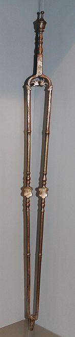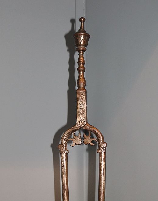 Eine weitere Besonderheit des Gerätes ist die Größe. Denn Kaminbestecke aus späterer Zeit, dem 18. oder 19. Jahrhundert etwa, fallen viel kürzer aus. Zudem ist die Länge ein Zeichen dafür, dass die Feuerzange wirklich der Nutzung eines Kamins und nicht der eines Ofens diente. Beim Nachlegen von Brennstoff in den Kamin musste der Abstand der heizenden Person zum Kamin wesentlich größer sein als bei einem Ofen, da der Feuerraum größer und nicht abgeschlossen war. Zudem ist daraus ersichtlich, dass diese Kaminzange mit beiden Händen benutzt wurde. Vermutlich brauchte die Person sich nicht einmal hinzuhocken oder niederzuknien, sondern konnte den Brennstoff bequem im Stehen nachlegen.