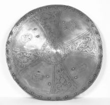 Ein besonderer Rundschild aus dem 16. Jahrhundert in der Rüstkammer des Ostfriesischen Landesmuseums │ Emder Rüstkammer zeigt eine Ätzmalerei mit einem beliebte Bildthema aus der Renaissance.