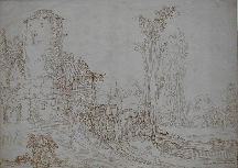 Das Kunstwerk dieses Monats zeigt eine Federzeichnung, die trotz ihres Titels Tobias mit dem Engel Raphael eigentlich mehr als Studie einer italienischen Landschaft bezeichnet werden könnte. Denn während in Fabers Gemälden das Figürliche eindeutig dominiert, sind auf dieser Zeichnung die beiden wandernden Protagonisten in die linke untere Ecke gedrängt. Die im Hintergrund befindliche Landschaft und Architektur stehen im Grunde für den Künstler im Vordergrund. Die Darstellung bezieht sich auf die Geschichte von Tobias, der mit Hilfe des Engels Raphael seinen gerechten und frommen, aber erblindeten Vater Tobit von dieser Behinderung heilt. Bevor dieses aber geschehen konnte, musste Tobias erst eine lange Reise unternehmen, auf der ihn der Engel gleichfalls begleitete. Faber hat Tobias in der Mode des frühen 17. Jahrhunderts – eben zeitgenössisch und nicht historisierend – dargestellt. Der Engel Raphael, im langen Kleid und mit Flügeln auf dem Rücken, wirkt dagegen eher wie eine junge Frau. Begleitet wird das Paar von einem Hund. Hinter dieser Figurengruppe erhebt sich eine mittelalterliche, zum Teil ruinöse Burganlage mit einem zweigeschossigen Rundturm. Die rechte Bildhälfte wird dominiert von hoch aufragenden Bäumen und einigen Büschen. Der Himmel ist wolkenlos oder nicht ausgearbeitet, genauso wie das ganze Bild eigentlich nur aus Umrisszeichnungen ohne ausgefüllte Flächen besteht. Obwohl die Zeichnung erst 1624 entstand, also ein Dutzend Jahre nach seinem nachgewiesenen Rom-Aufenthalt, so ist ihr Charakter noch immer von den Eindrücken der italienischen Landschaft geprägt, die auch von seinen Zeitgenossen niederländischer Herkunft wie z. B. Paul Bril (1554 – 1626) oder Abraham van Cuylenburg (um 1620 – 1658) vielfältig festgehalten wurden.