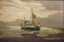 Trimborns Komposition erscheint auf den ersten Blick sehr einfach. Man sieht zwei Tjalken in weiter Wattlandschaft. Mit zügig gesetzten, breiten Pinselstrichen ist die Farbe so dünn aufgetragen, dass vielerorts der Malträger durchscheint, als handele es sich um eine rasch hingeworfene Skizze. Sicherlich prägt dies wesentlich den Reiz des Gemäldes als eines spontan eingefangenen Natureindrucks. Dennoch aber zeigt es eine aus künstlerischem Instinkt heraus getroffene sichere und überzeugende Gestaltung: