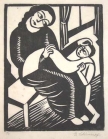 1911 beginnt er zu zeichnen und strebt von Anfang an - sei es aus Unvermögen oder aus zeitbedingtem Stilwillen - nach möglichster Vereinfachung der Formen. Bevor er sich in den 1920er Jahren zu einem bedeutenden Vertreter der Neuen Sachlichkeit in Deutschland entwickelt, durchläuft Schrimpf eine expressionistische Phase. Im Fundus der umfangreichen Graphiksammlung des Ostfriesischen Landesmuseums I Emder Rüstkammer befindet sich ein interessanter Holzschnitt des Künstlers aus dem Jahre 1918, der ab dem 23. August für einen Monat im Pelzerhaus zu sehen ist.
