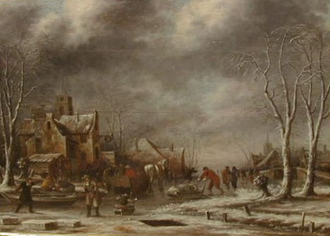Dieses mit Ölfarben auf Holz gemalte Bild stammt von Thomas Heeremans, der es unten rechts signierte sowie datierte. Der Künstler wurde um 1641 geboren und starb nach 1697. Er war in Haarlem tätig und malte mit Vorliebe Kanallandschaften, Strandansichten und Dorfbilder im Sommer und Winter. Sein Gefühl für Stimmung und eine gedämpfte Farbgebung kommt in dieser Winterlandschaft meisterhaft zum Ausdruck.