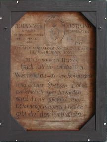 Ein seltener und anrührender Fall tritt uns in einem Bildnis aus der Sammlung der „Gesellschaft für bildende Kunst und vaterländische Altertümer“ entgegen. Hier sind Verse rückseitig mit Pinsel auf die Leinwand geschrieben. Zunächst aber werden der Porträtierte als Johannes a Kyrning benannt und seine Lebensdaten wie sein Wappen gegeben. Der Dargestellte hatte spätestens ab 1818 das Amt des Emder Stadtsekretärs inne. Weiter liest man, dass das Gemälde 1810 der befreundete Maler Hero Philippus Ross in Leer malte. Der 1776 in Ihrhove in Ostfriesland geborene Künstler hatte viele seiner Auftraggeber in Emden und Ostfriesland gefunden, bevor er nach Groningen übersiedelte, wo er 1826 starb.