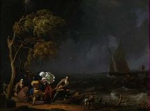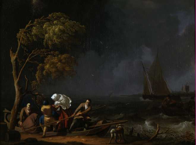 Zu diesen gehört auch „Die Fähre bei Sturm“ aus dem Ostfriesischen Landesmuseum Emden. Das Gemälde ist ein sehr eindrucksvolles Beispiel für die maritimen Alltagsszenen, die neben der Wiedergabe historisch bedeutender Seegefechte oder dramatisch geschilderter Seestürme zu den wichtigsten Themen der niederländischen Marinemalerei gehören.