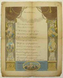kolorierte Radierung / Handschrift