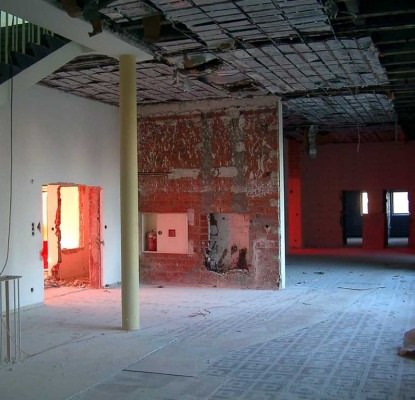 Demontage von Wand - und Deckenverkleidungen im ehemaligen Festsaal.
